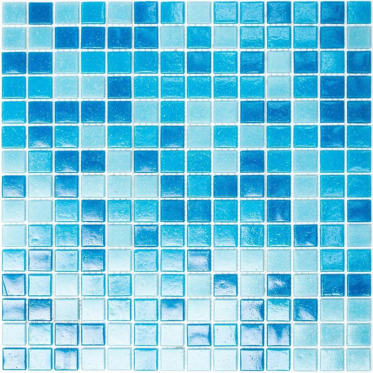 Niebieskie mozaiki do basenu wewnętrznego lub zewnętrznego. Klejenie papieru ułatwia rzemieślnikowi cięcie. Można je szybko wyczyścić za pomocą szklanej powierzchni.-