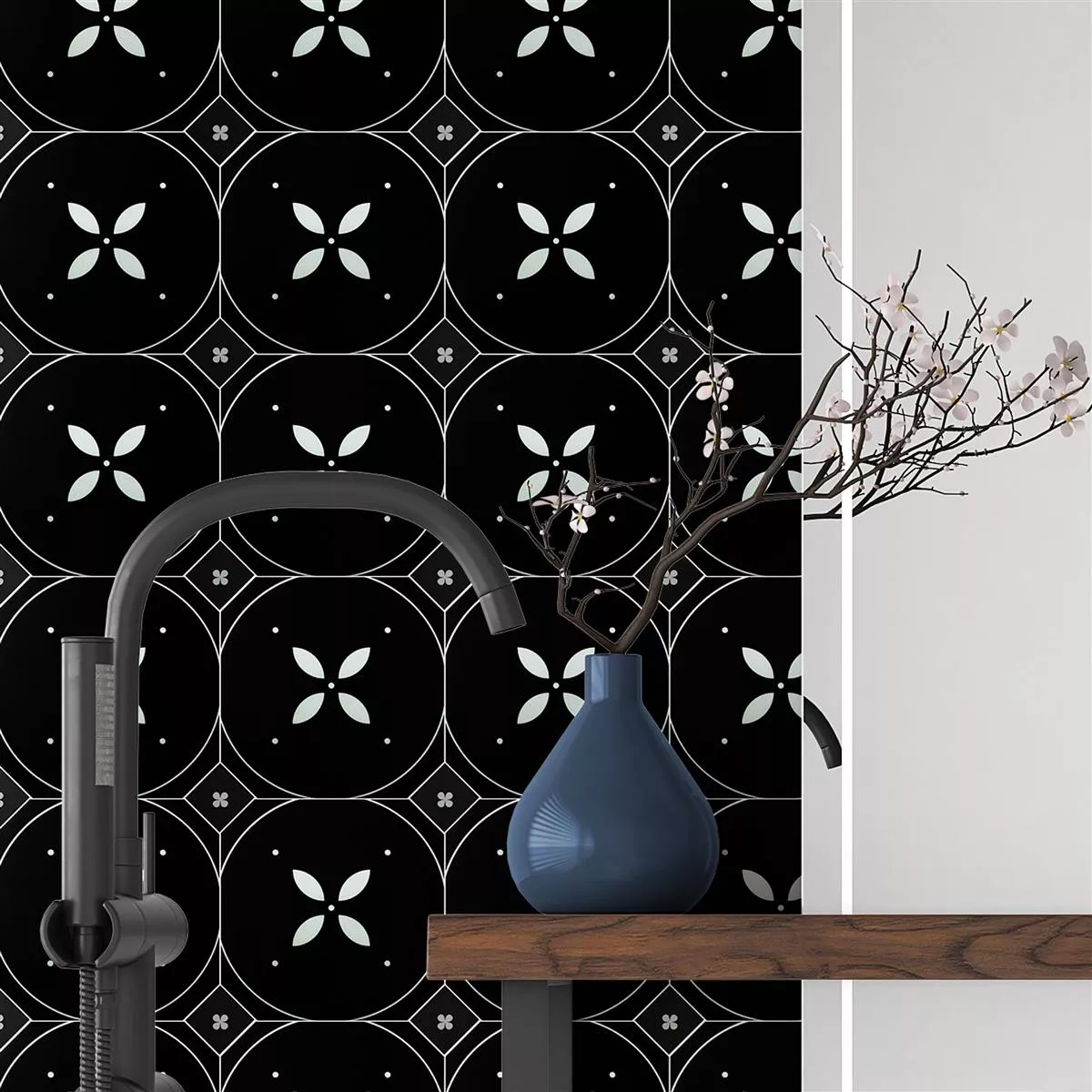 Dodaj odrobinę klasy swoim pokojom dzięki wkładanym płytkom z gresu porcelanowego Genexia Black White Decor 1.