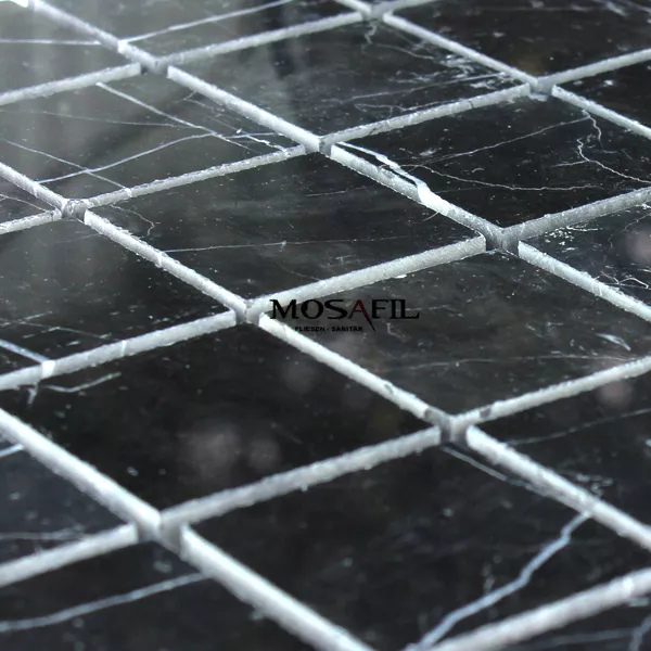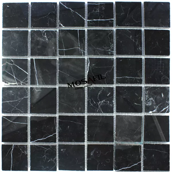 Marmor Mosaik 48x48x8mm Schwarz Poliert >
