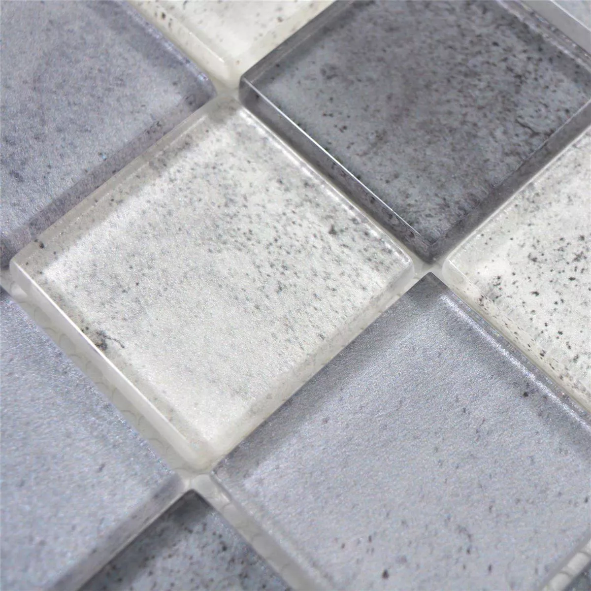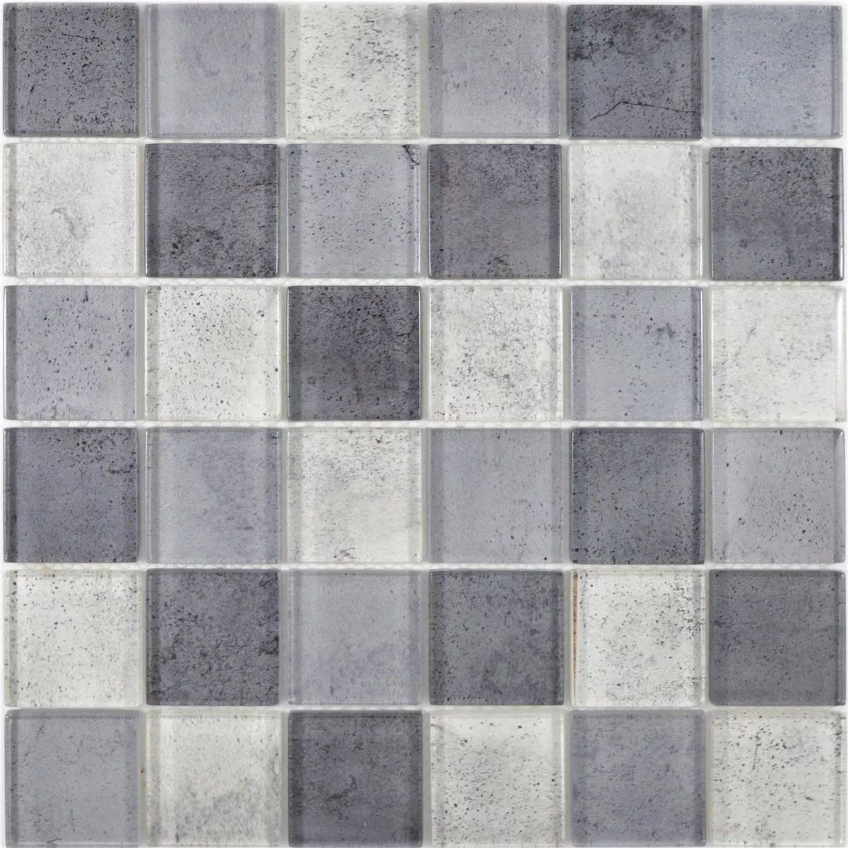 Dzięki błyszczącej powierzchni i wyglądowi betonu płytki te oferują stylowy kontrast i atrakcyjnie odbijają światło. Płytki mozaikowe są dostępne w formacie kwadratu 47 x 47 mm, na matach o wymiarach 29,8 x 29,8 cm i zajmują powierzchnię 0,089 m². Grubość płytek wynosi 8 mm, a szerokość spoiny powinna wynosić 2 mm, aby zapewnić harmonijny wygląd całości.