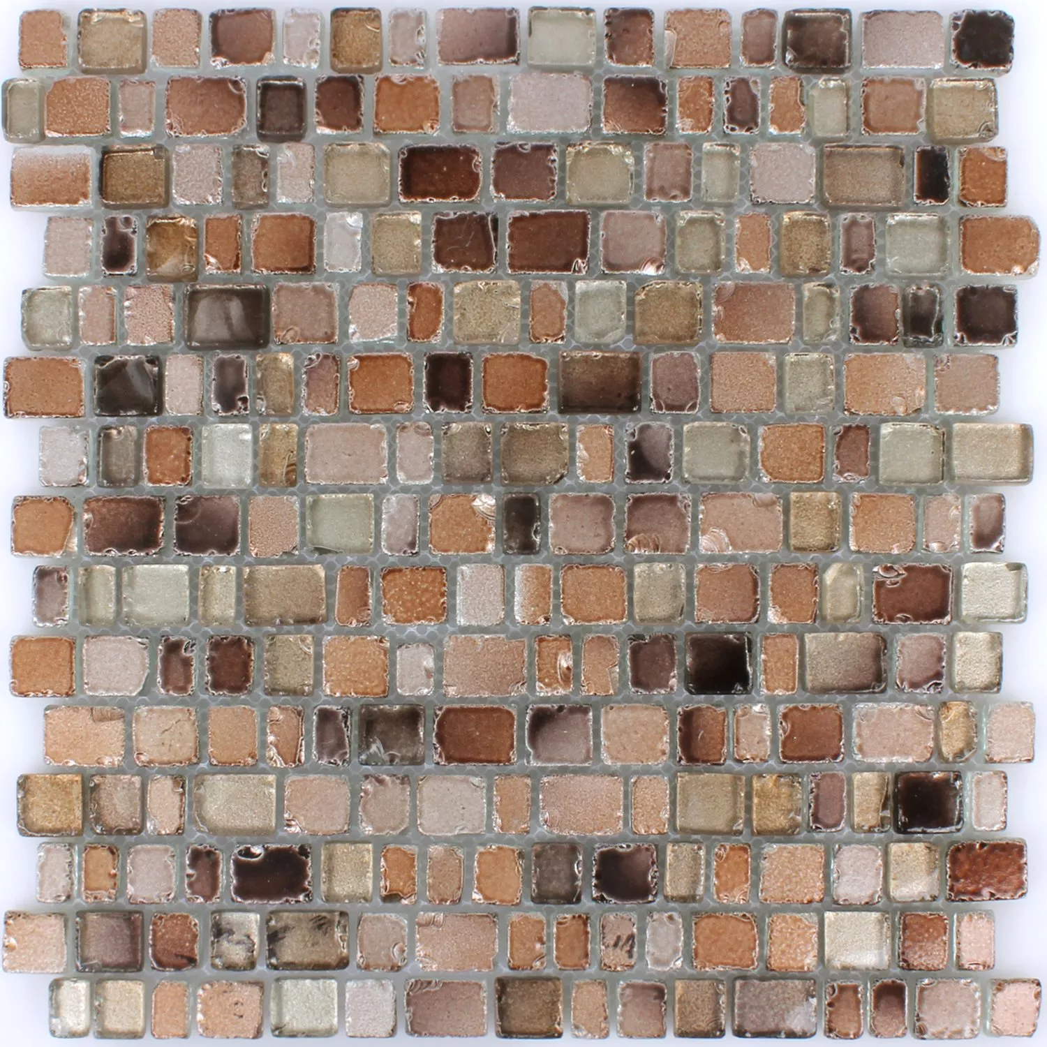Te modne płytki ścienne z serii Glas Roxy w kolorze brązowo-srebrnym to dobry wybór dla wszystkich miłośników małej mozaiki. Piękne szklane płytki ścienne dostępne są w dwóch odcieniach kolorystycznych. Czasami kolor bazowy mozaiki szklanej jest czarny, a czasami brązowy. Mozaika szklana na ścianie jest zawsze łatwa w utrzymaniu, dlatego te płytki mozaikowe Glas Roxy wyglądają jak pierwszego dnia, nawet po wielu latach. Te płytki ścienne są idealną alternatywą dla gładkich tapet i boazerii. Dzięki licznym kamyczkom ze szkła, którego powierzchnia subtelnie błyszczy, na ścianie zawsze pojawiają się nowe, ekscytujące spojrzenia, w zależności od pory dnia i padania światła.