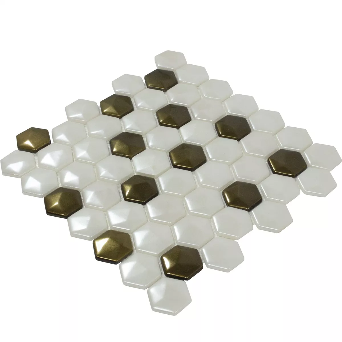 Mozaiki Szklana Płytki Las Vegas Sześciokąt 3D Biały Złoto