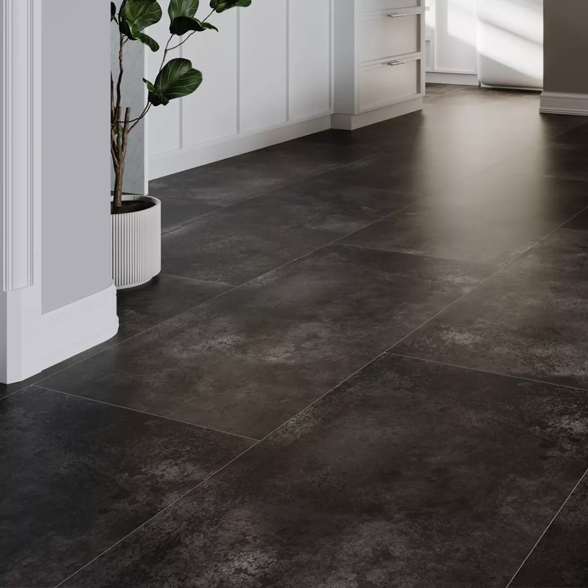 Płytki podłogowe z gresu porcelanowego Oregon w kolorze czarnym zachwycają eleganckim metalicznym wyglądem i nadają każdemu pomieszczeniu nowoczesny, stylowy klimat. Dzięki dużemu formatowi 60 x 120 cm zapewnia elegancki, jednolity wygląd i nadaje się zarówno na okładziny podłogowe, jak i ścienne. Matowa, szkliwiona powierzchnia podkreśla ponadczasowy design i sprawia, że płytki są wyjątkowo łatwe do czyszczenia.