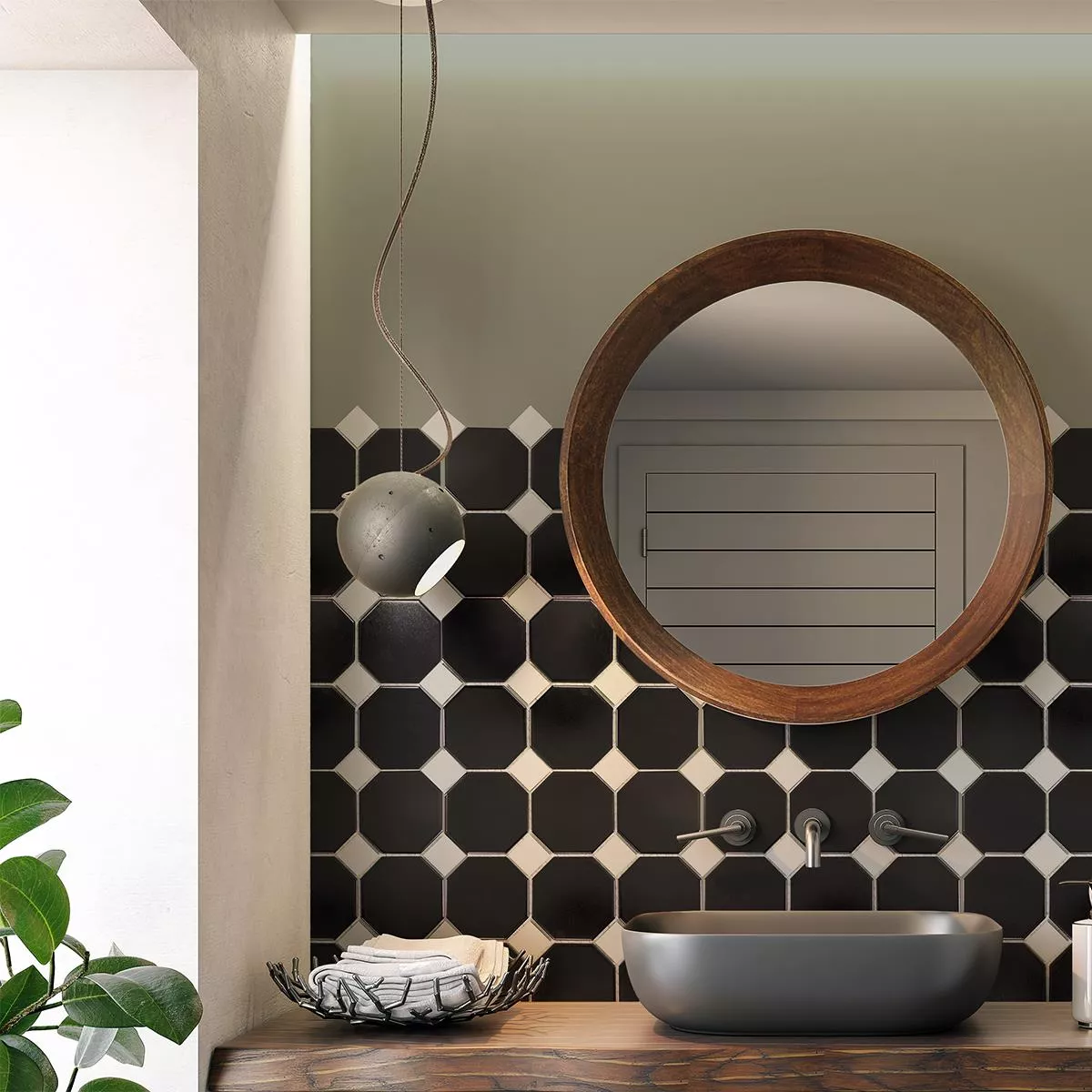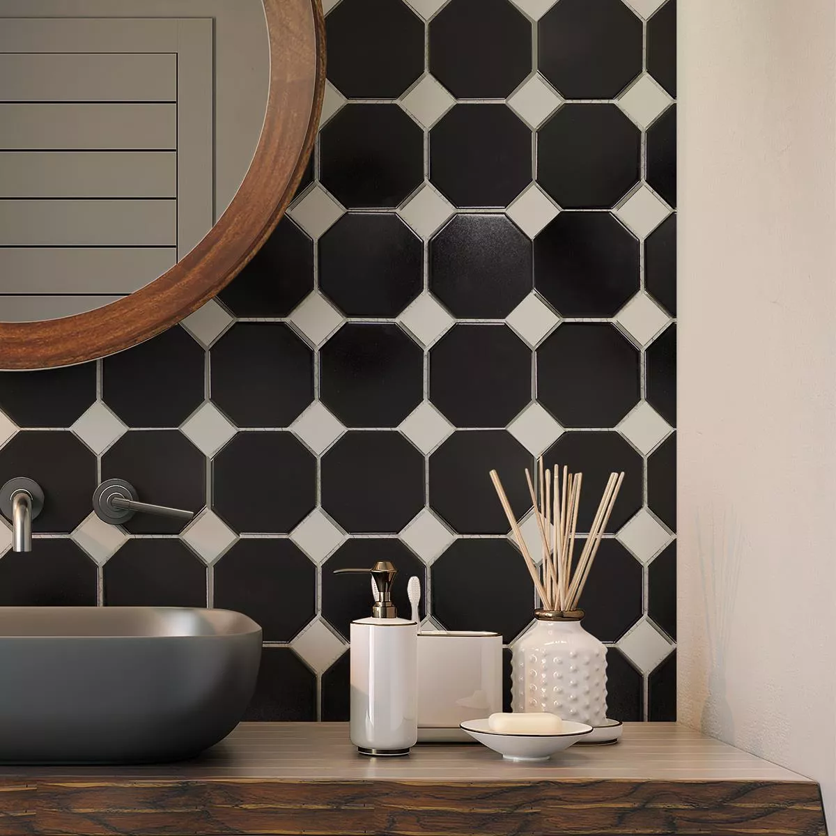 Próbka Ceramika Mozaika Ośmiokąt Fürstenberg Czarny Biały
