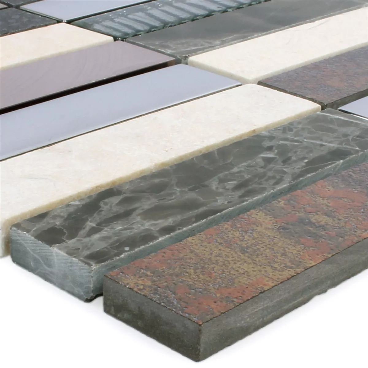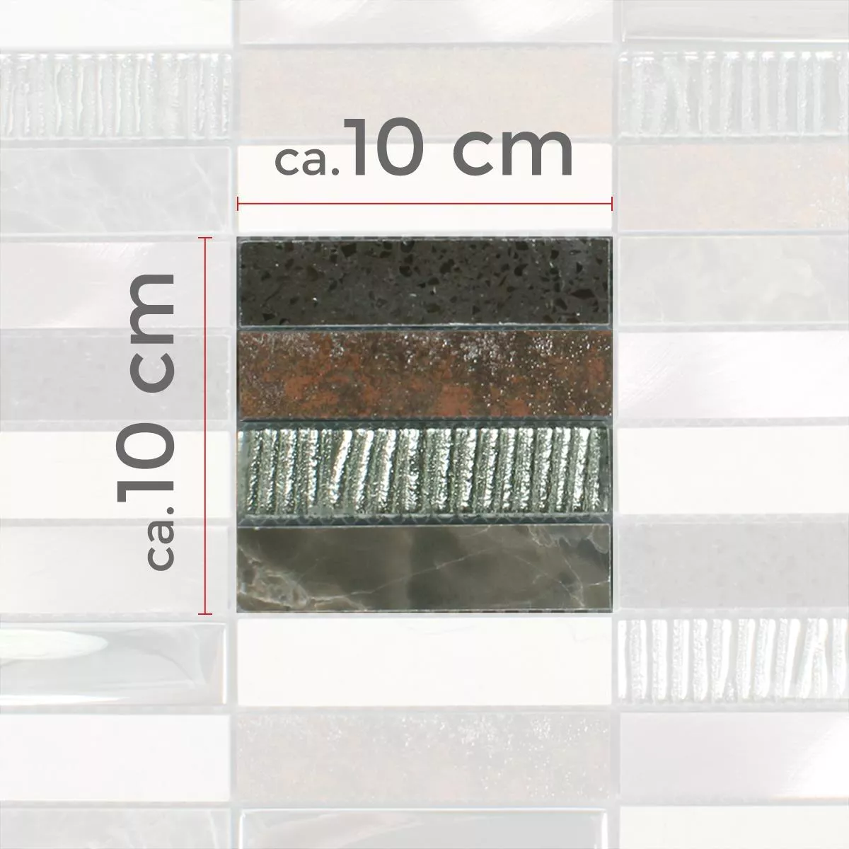 Każda płytka i każda mozaika mają inne wymagania dotyczące przycinania, układania i obróbki ze względu na indywidualne właściwości materiału i warunki użytkowania. Poproś lokalnego eksperta o prawidłowe i bezpieczne ułożenie mozaiki lub płytek. Nie ponosimy odpowiedzialności za niefachowe użytkowanie i wadliwe wykonanie materiałów konstrukcyjnych.