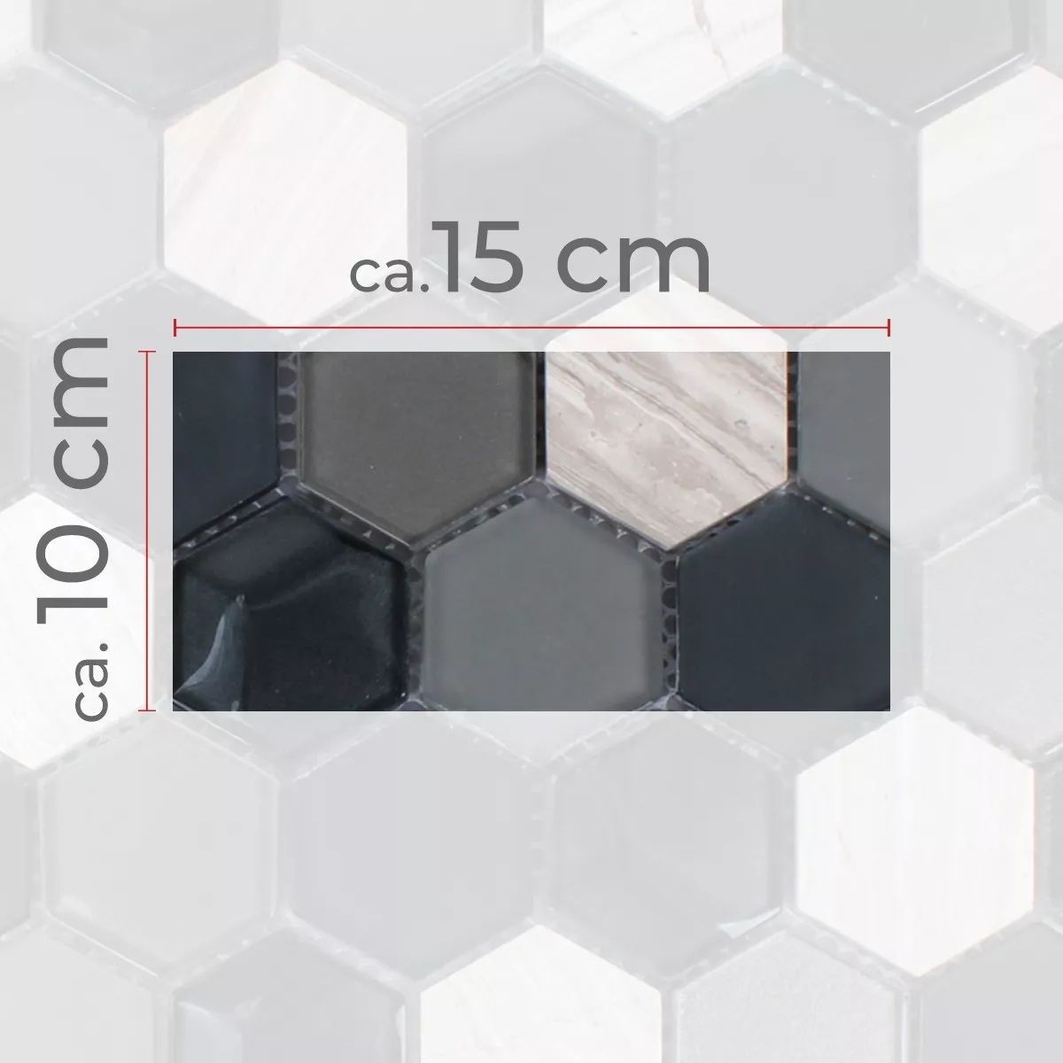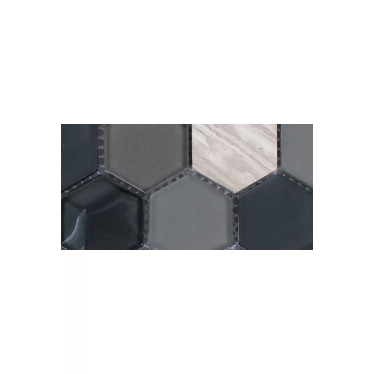 Próbka Mozaika Sześciokąt Szkło Kamień Naturalny Czarny Szary 3D