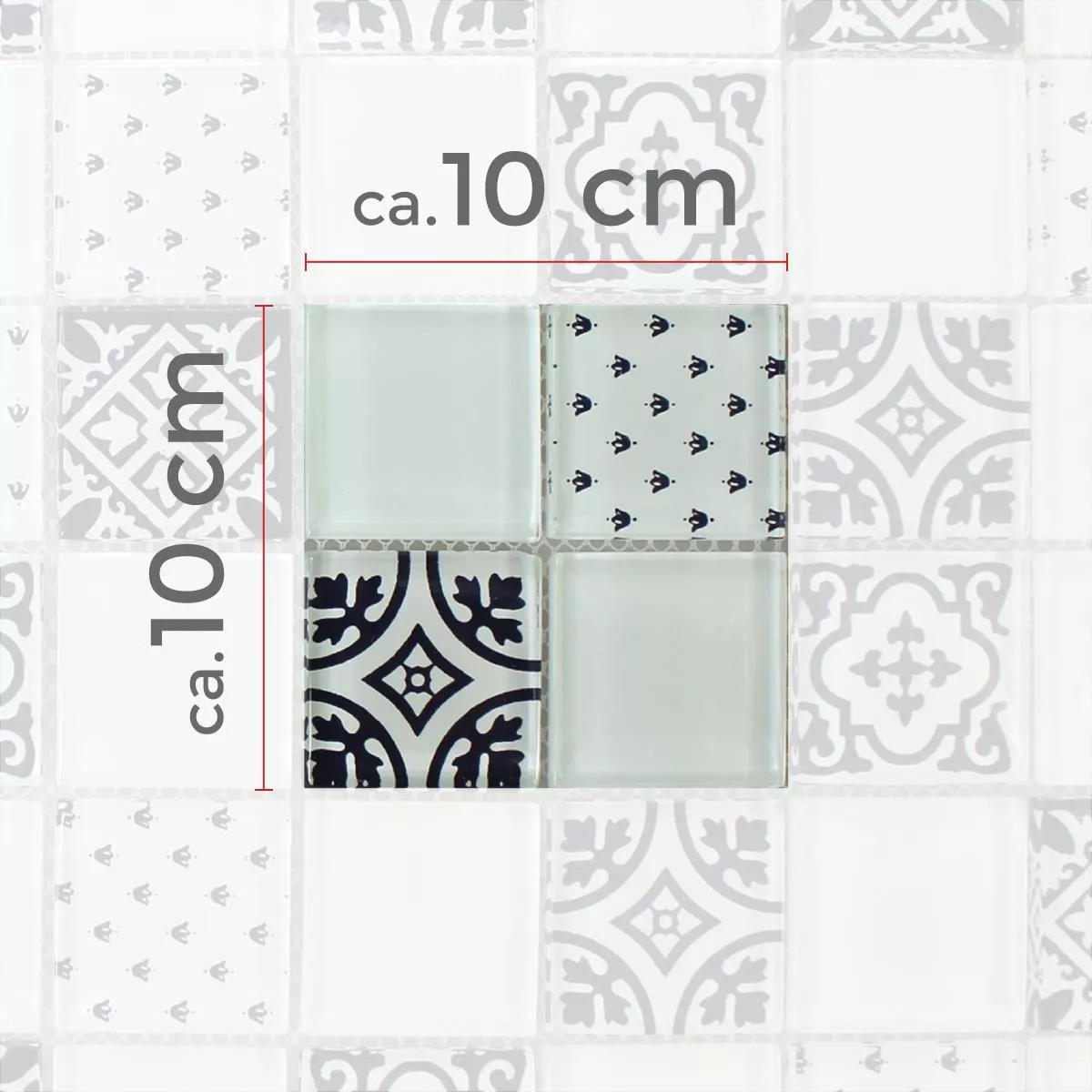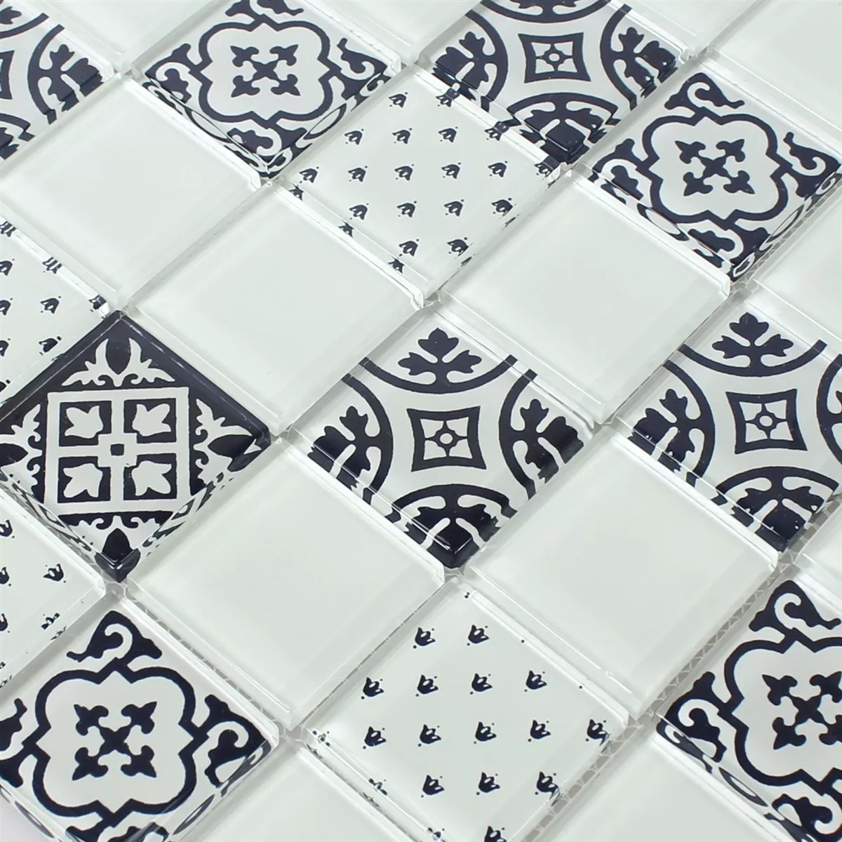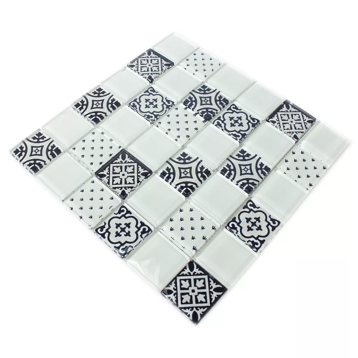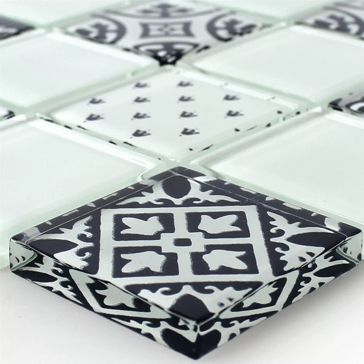 Próbka Mozaika Szkło Barock Ornament Biały