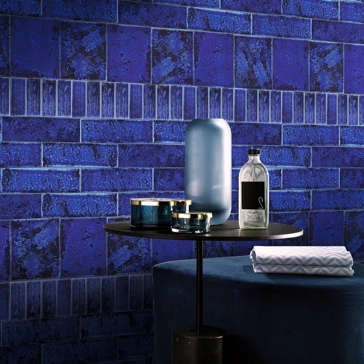 Próbka Płytki Ścienne Vanroy Karbowany 6x24cm Ciemnoniebieski
