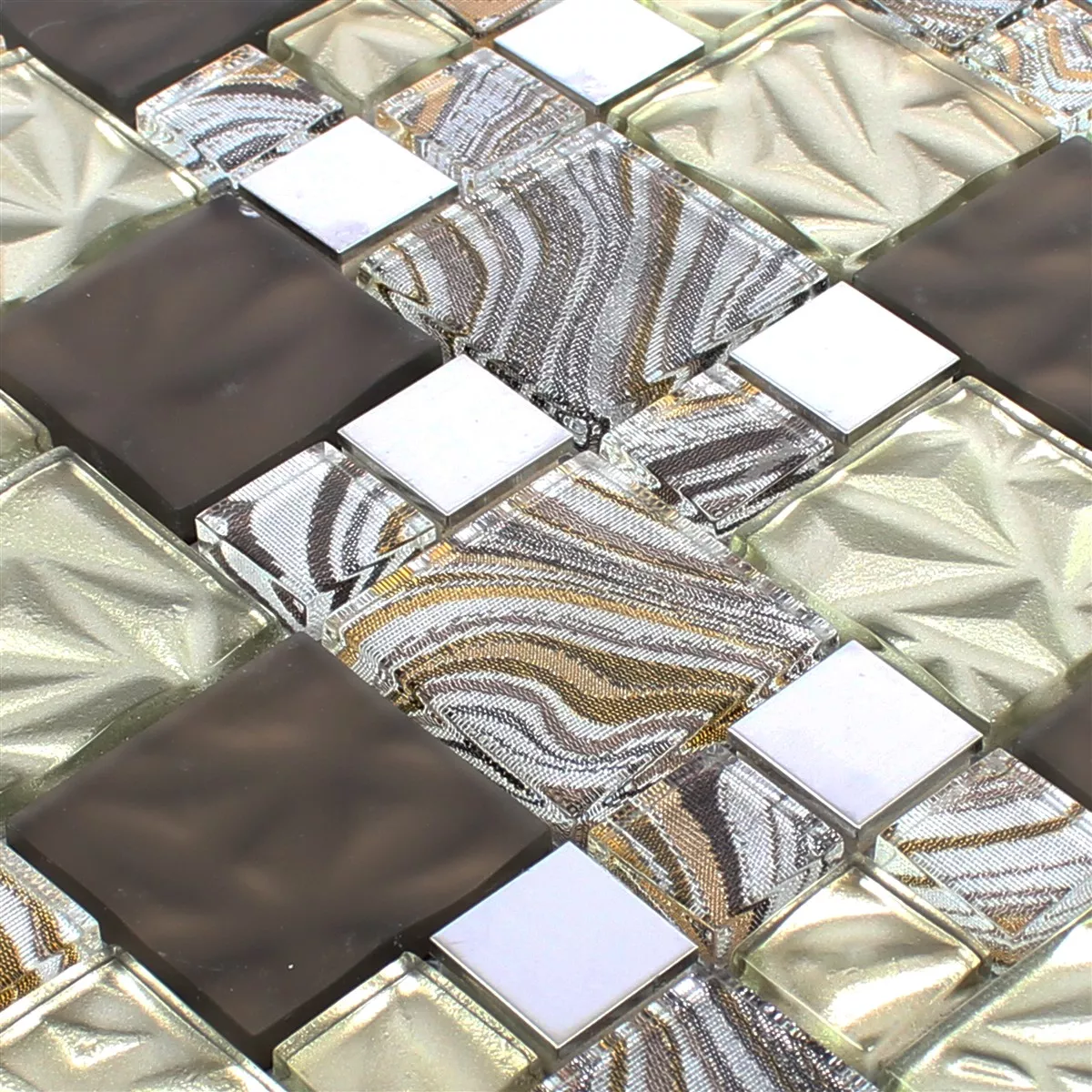 Próbka Szkło Metal Stal Nierdzewna Mozaika Zadar Beżowy Brązowy
