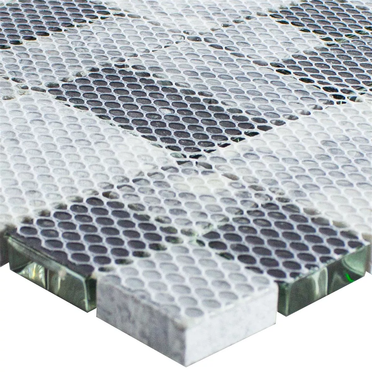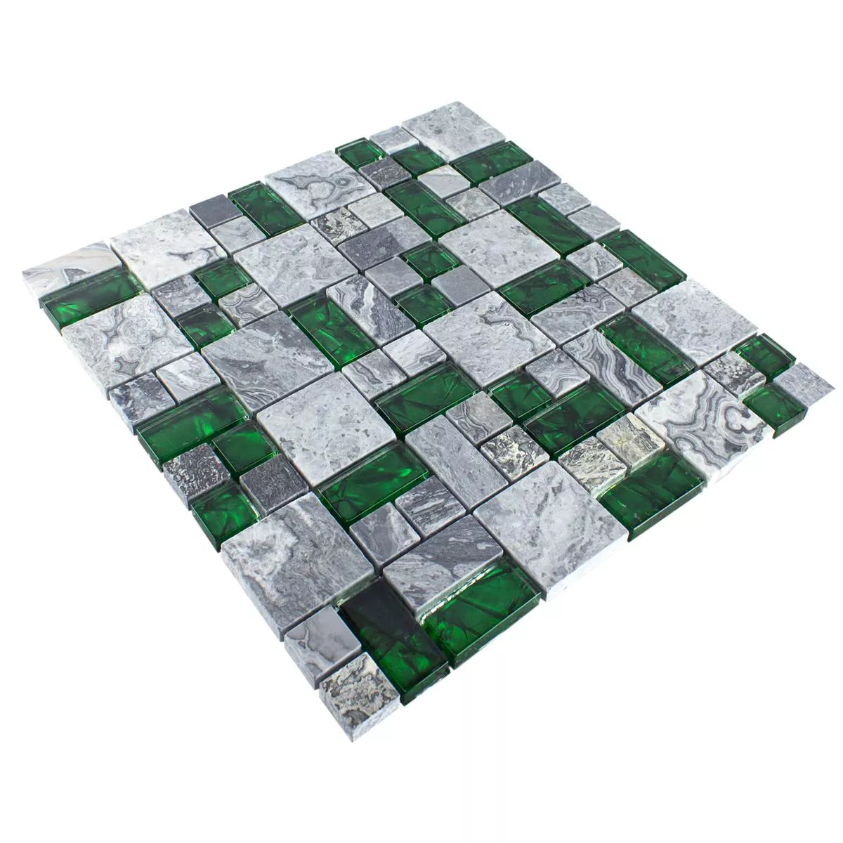 Idealna do stosowania w pomieszczeniach zamkniętych, takich jak prysznice lub inne wilgotne obszary, ta mozaika oferuje zarówno wyrafinowanie estetyczne, jak i korzyści praktyczne. Ich połączenie szarości i zieleni wnosi do Twojego domu nowoczesny i stylowy akcent i można je bez trudu łączyć z różnymi stylami wnętrz.
