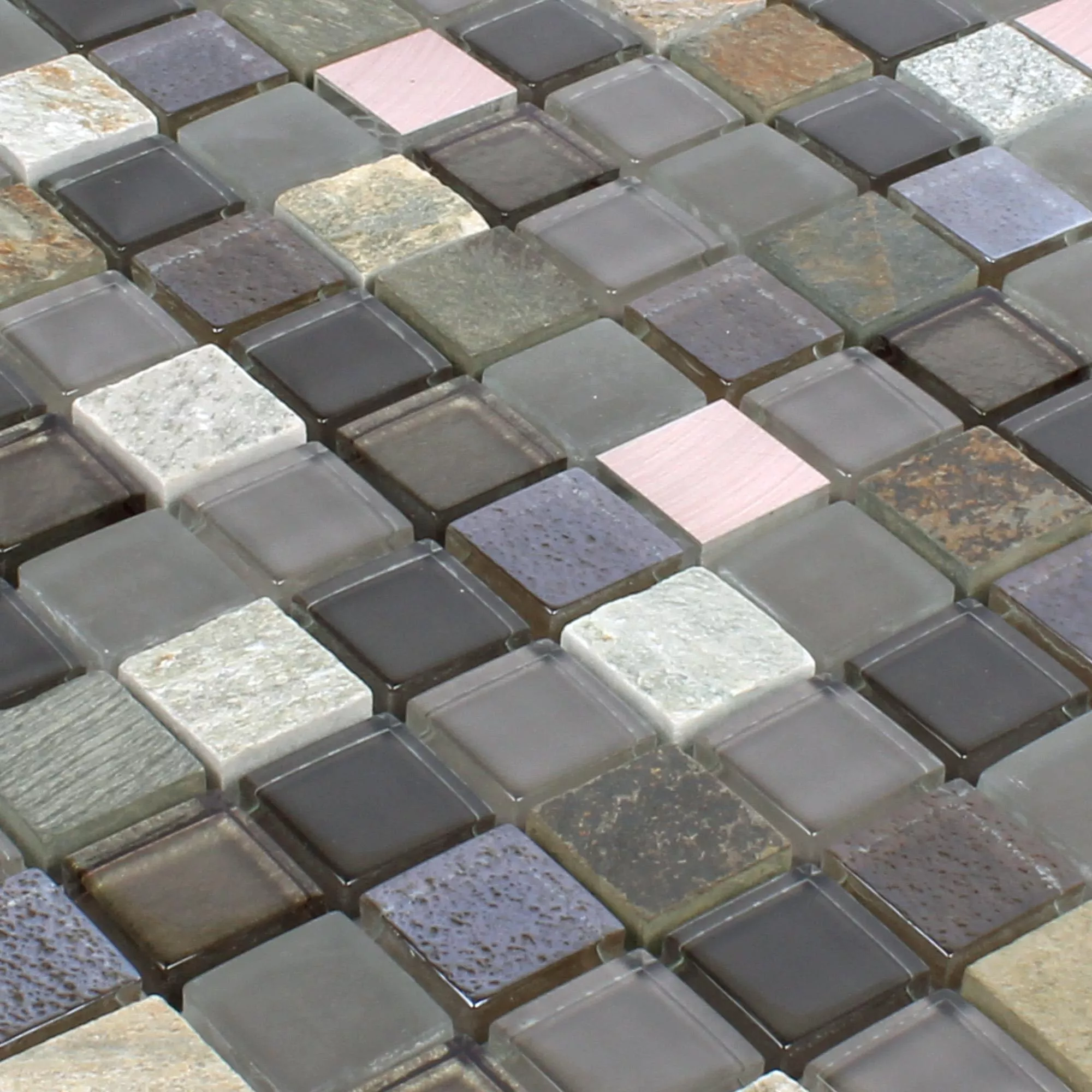 Szklane, metalowe płytki mozaikowe z kamienia naturalnego Riksha są czymś wyjątkowym. Te płytki zyskują na atrakcyjności dzięki połączeniu różnych materiałów. Połączenie łupka i kwarcu w połączeniu z miedzią i szkłem sprawia, że te mozaiki przyciągają wzrok. Współgranie powierzchni błyszczącej, szczotkowanej i matowej w szczególny sposób oddaje charakter różnych materiałów. Te kafelki są jak obraz, który zawsze daje nowe wrażenia, gdy się na nie patrzy. Płytki przeznaczone są do wnętrz, ale nie do pomieszczeń mokrych. W salonie, jadalni, ale także w sypialniach i pokojach gościnnych nie umkną im efekt.