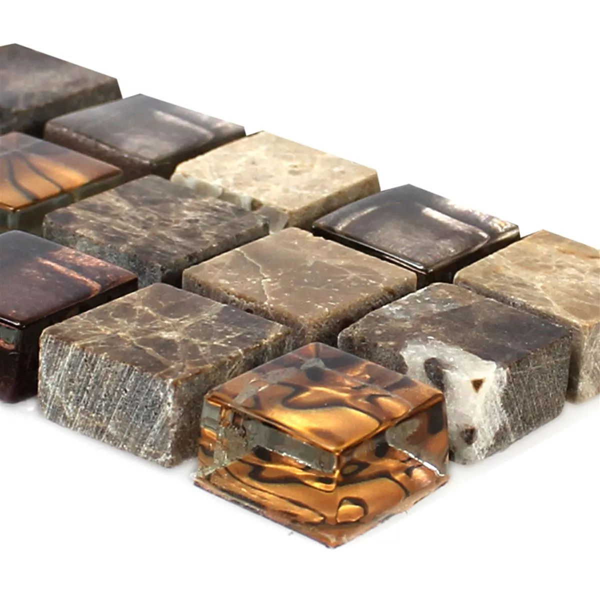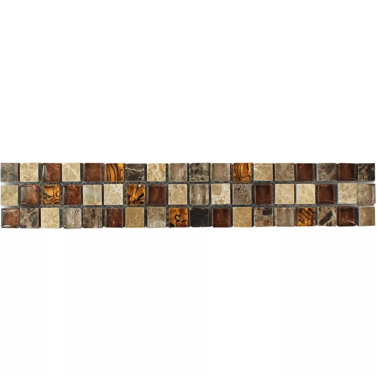 Naturalny kamienny bordo mozaika Gabon brąz to atrakcyjna propozycja do aranżacji wnętrz, zwłaszcza łazienek, kuchni i salonów. Border utrzymany jest w ciepłej tonacji brązu i składa się z połączenia naturalnego kamienia, szkła i marmuru. Rozmiar kamienia to 15x15mm, a powierzchnia jest błyszcząca, co nadaje mozaice elegancki i atrakcyjny wygląd.